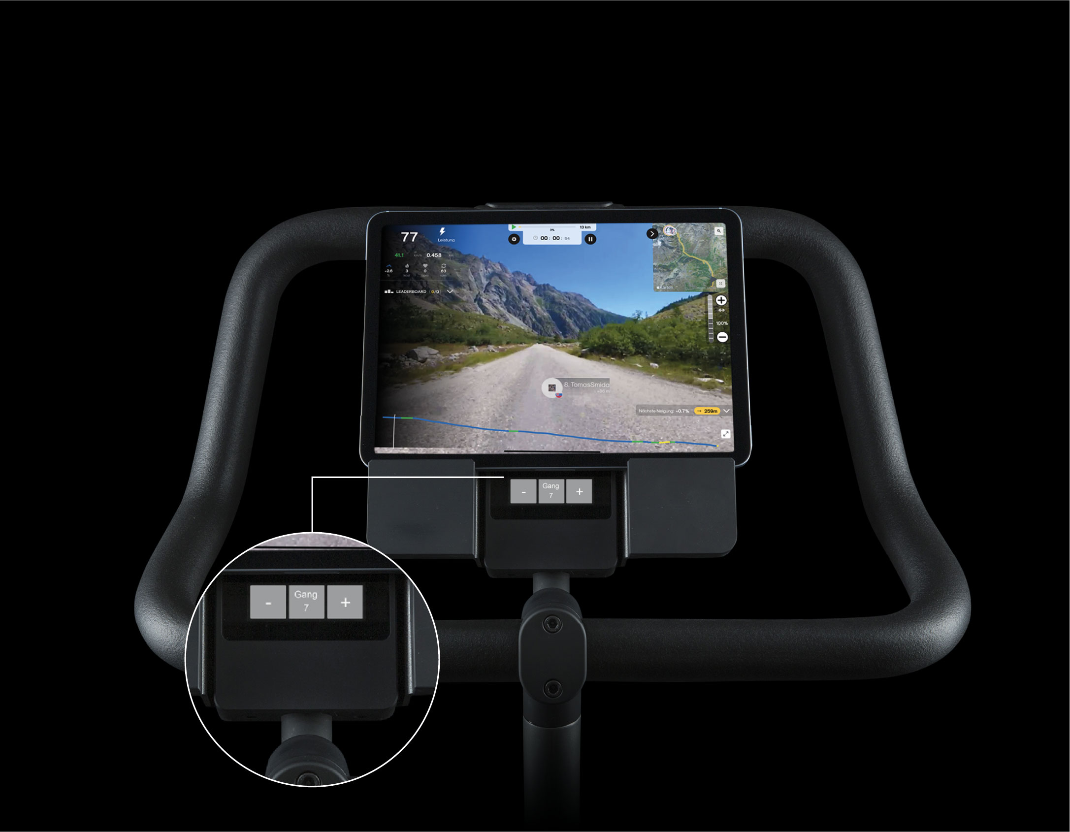 We have equipped the Ergometer PURE with a 4,3“TFT color touchscreen monitor and a user interface that is self-explanatory and easy to use with a clearly arranged operator guidance system. The trainings computer provides you with a wide range of different programs and gives you the opportunity to store training-data for up to five users.