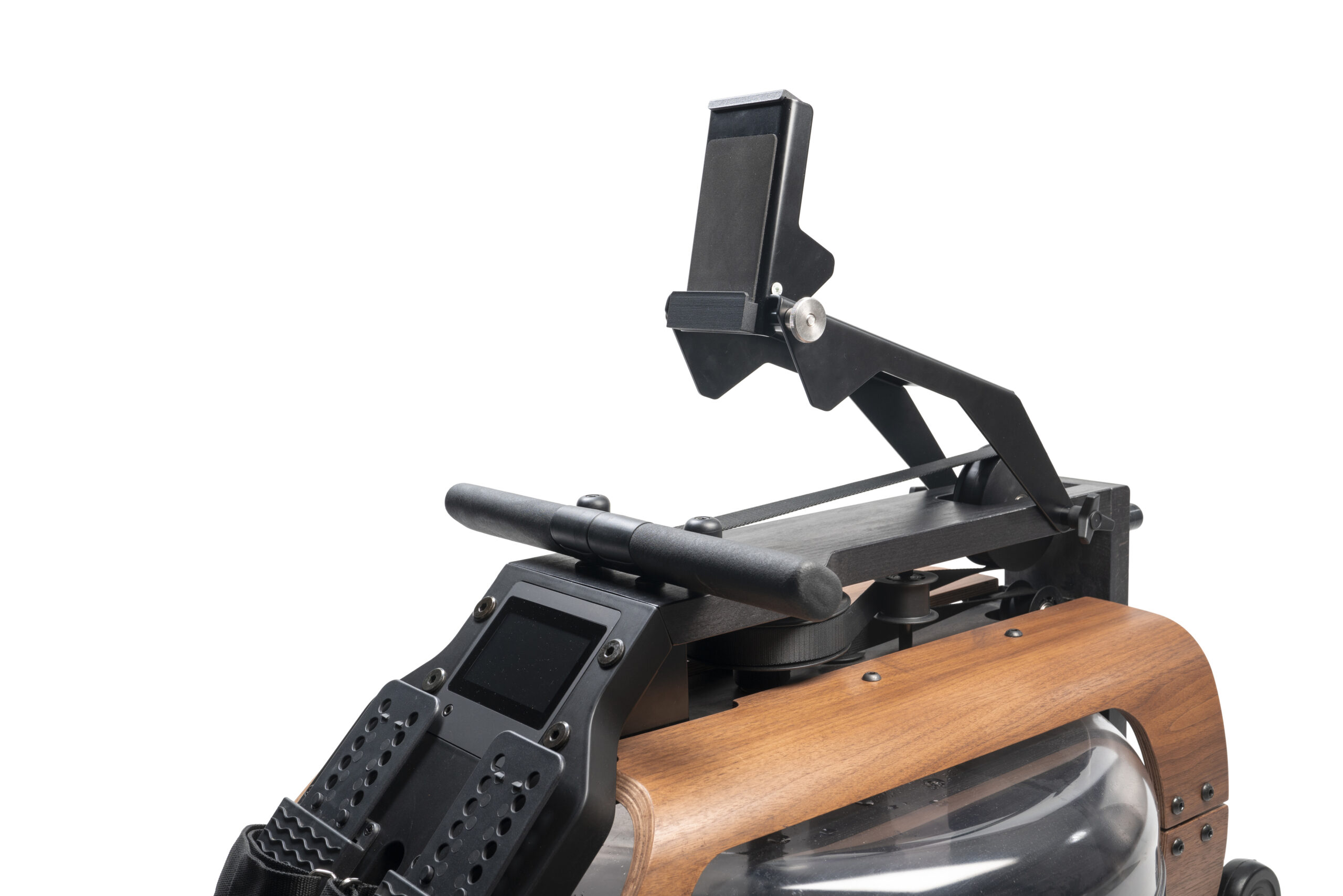 De tablethouder is in hoogte en hoek verstelbaar. Als je de roeier niet gebruikt, kun je hem inklappen en opbergen.